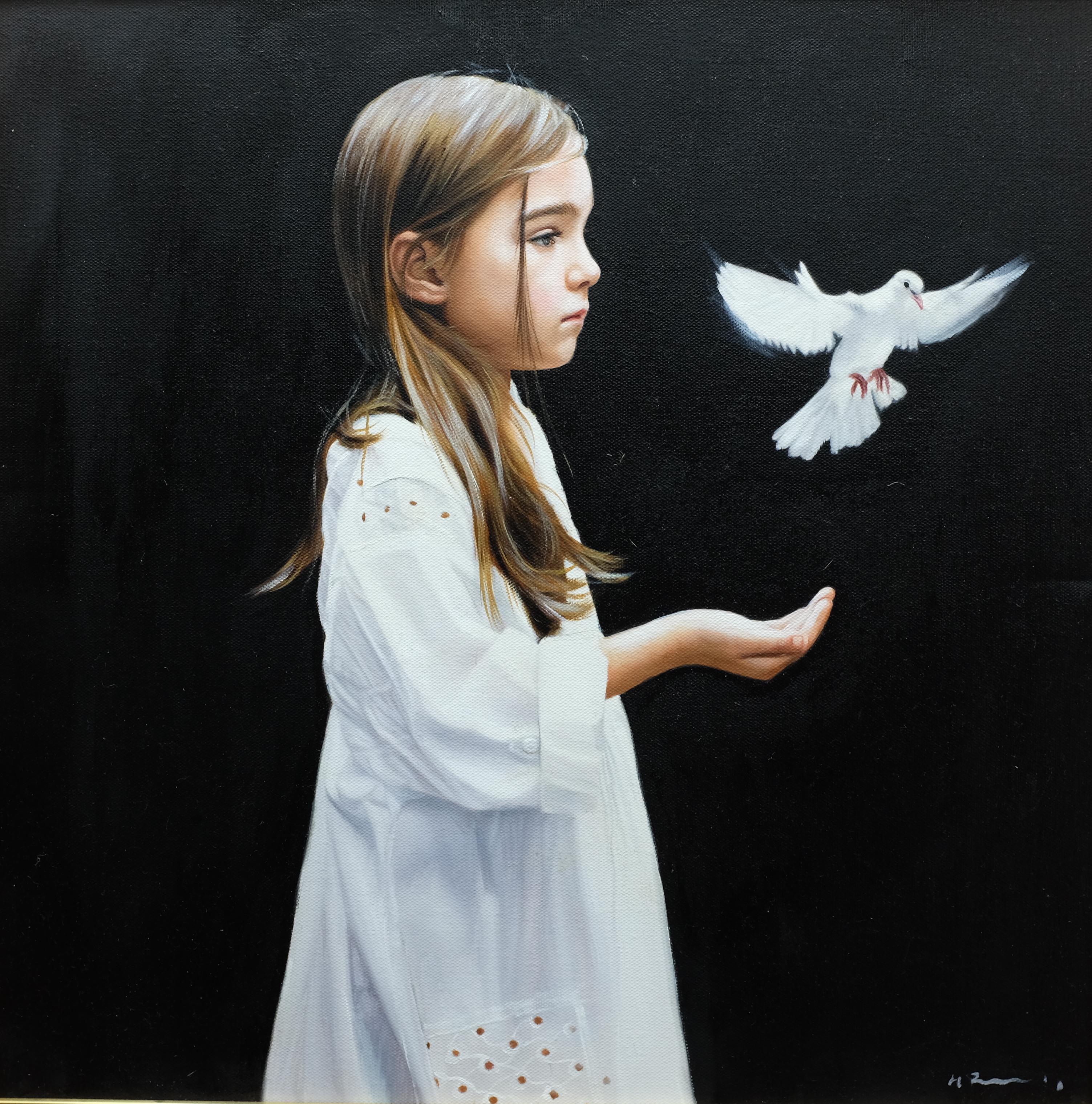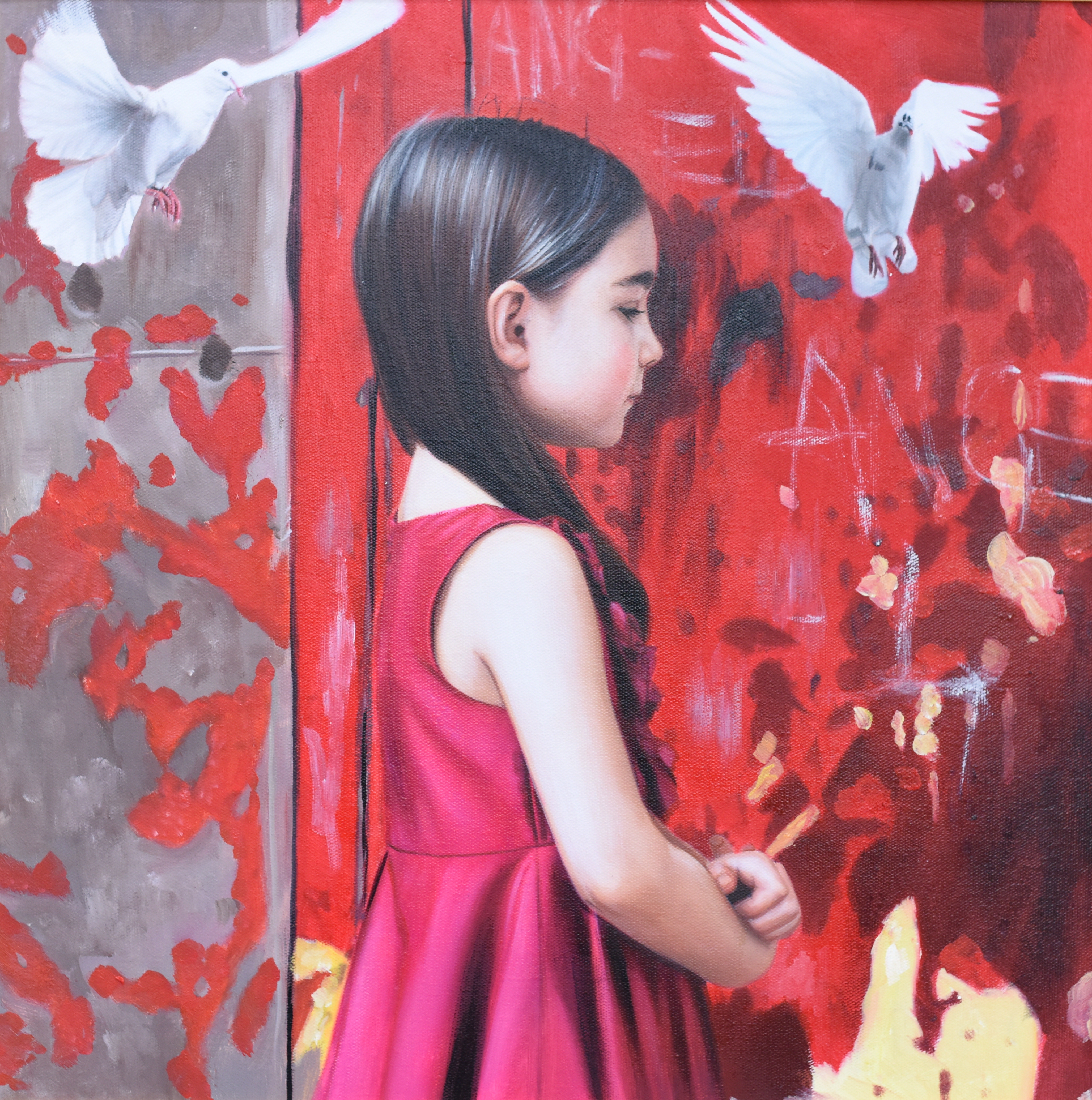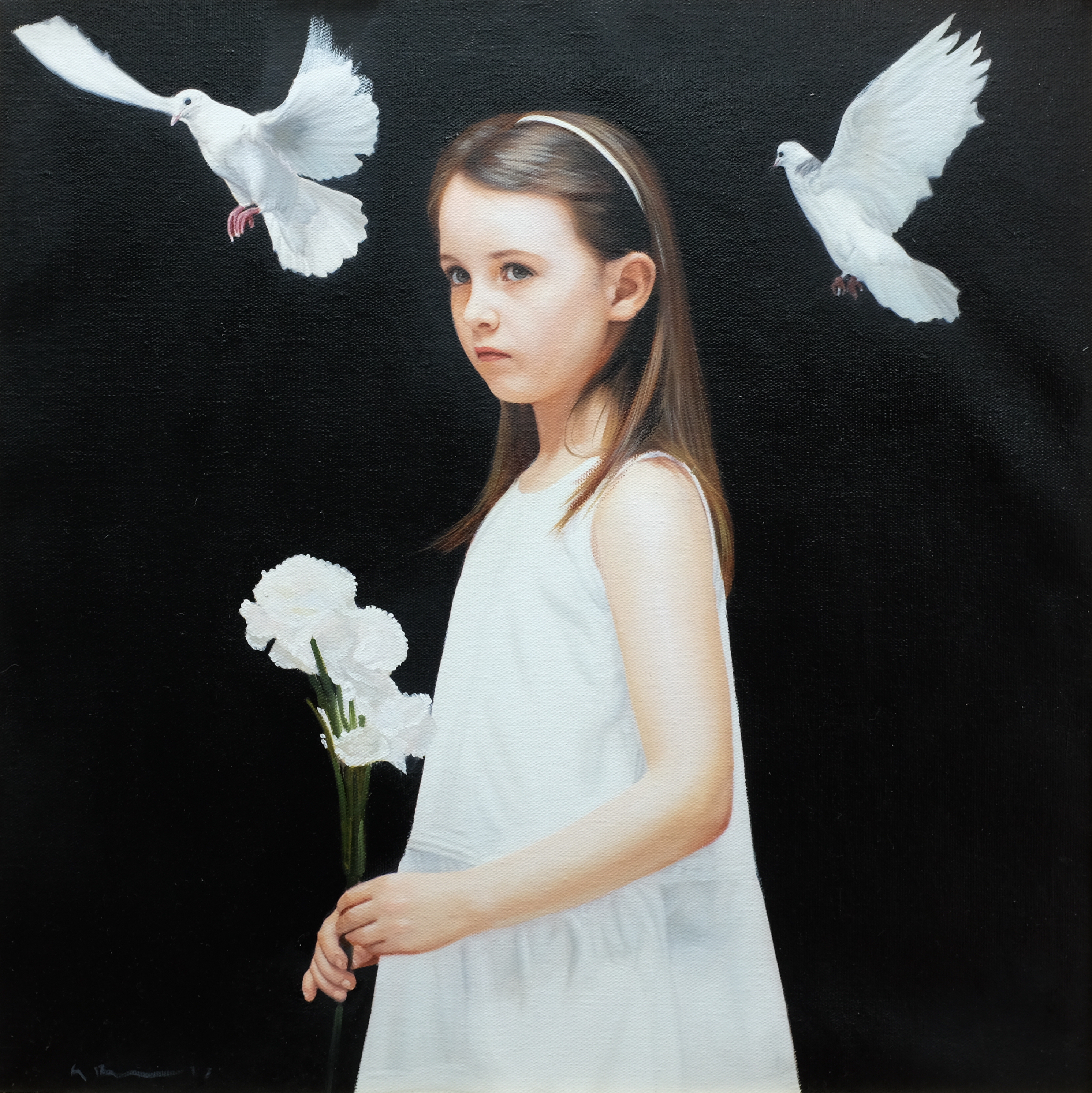 Burns’ Angels range from the gritty context of ‘Hope and Innocence’ to the softness of ‘Angel’. These paintings invariably invoke an emotive response.