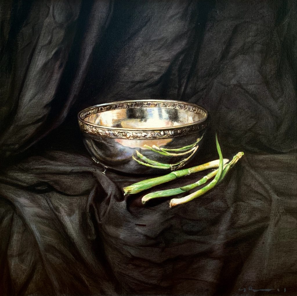 Scallions and a silver bowl [0433] (40x40cm) - £1,250