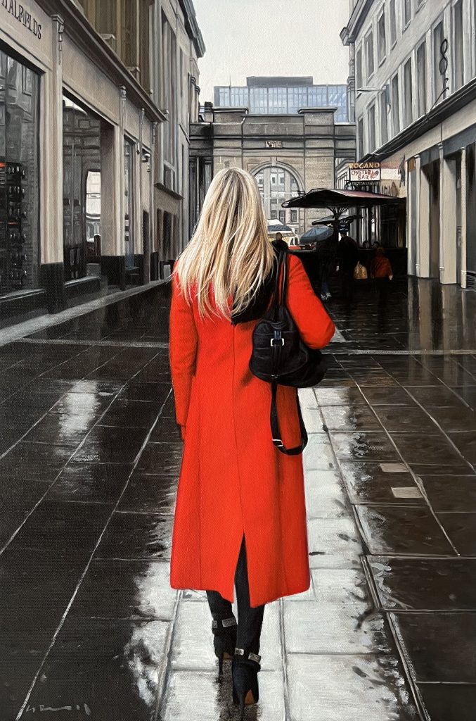 Red Coat and Umbrella [0673] (60x40cm) - £2750
